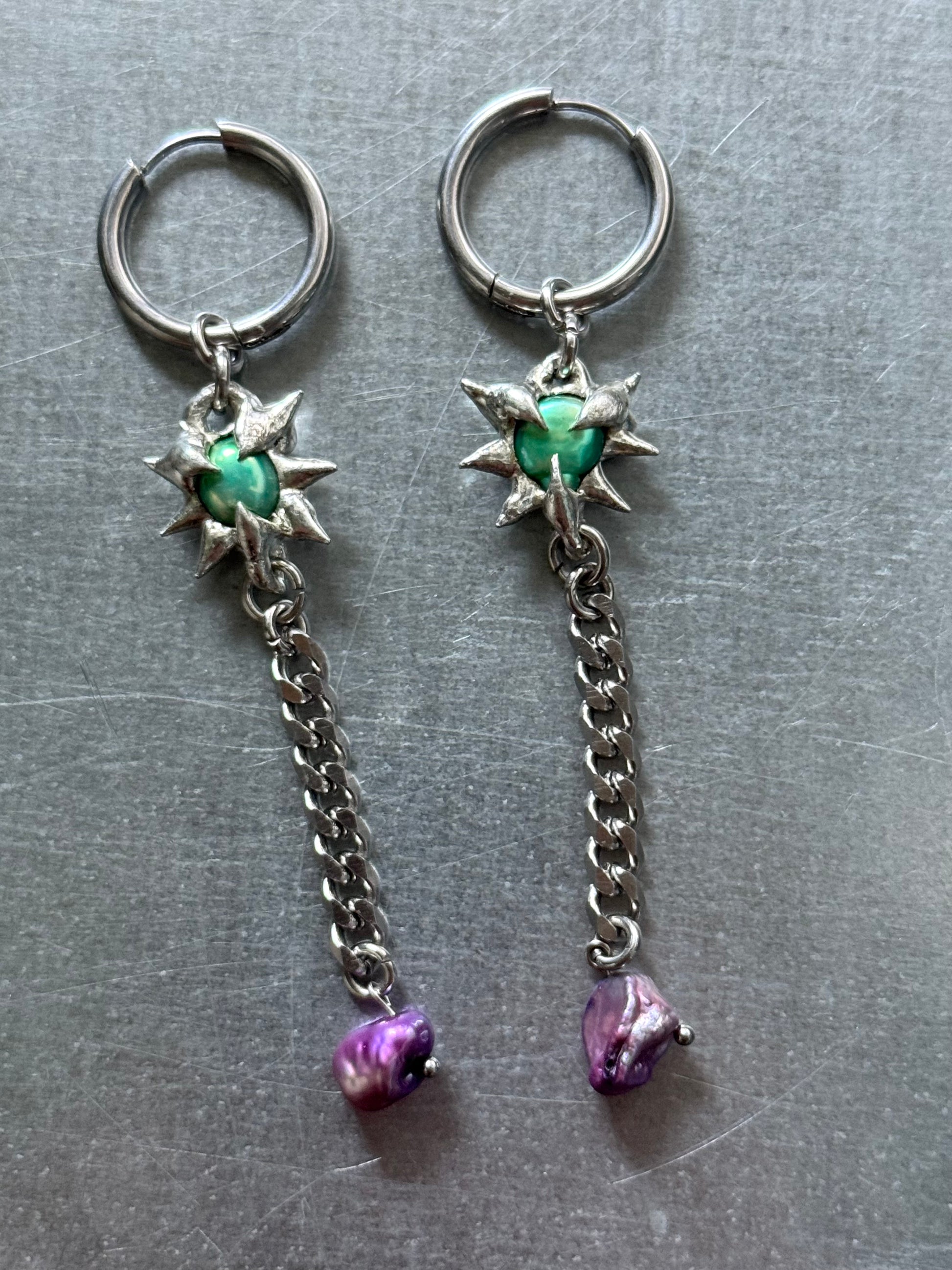 A hand-soldered freshwater pearl on stainless steel Creoles (hypoallergenic)