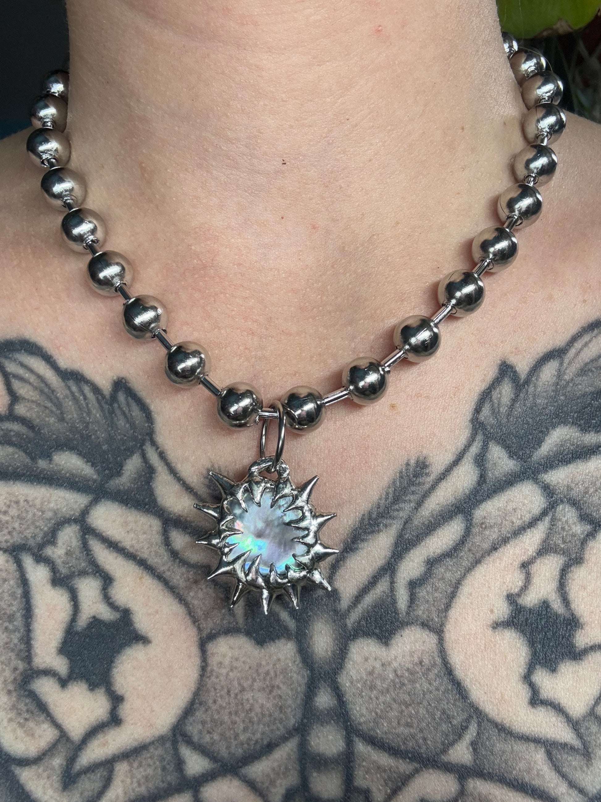 A hand-soldered pearl on a stainless steel chain. (hypoallergenic)