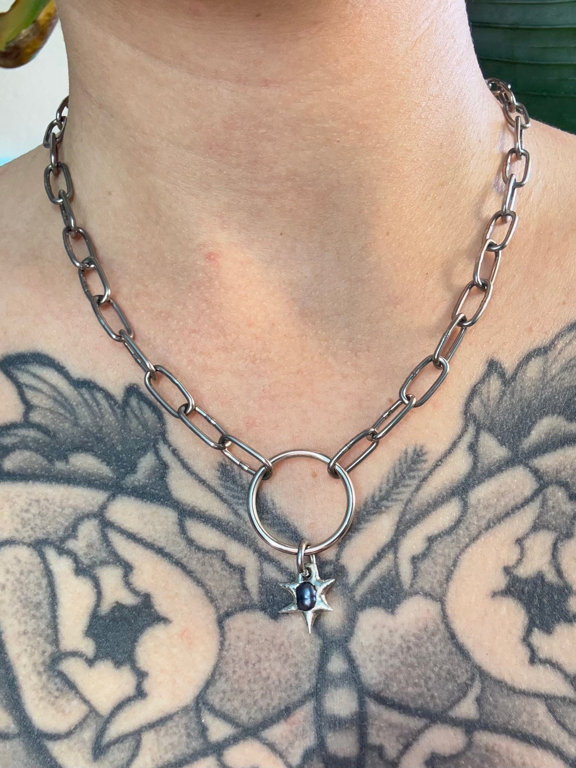 A hand-soldered pearl on a stainless steel chain. (hypoallergenic)