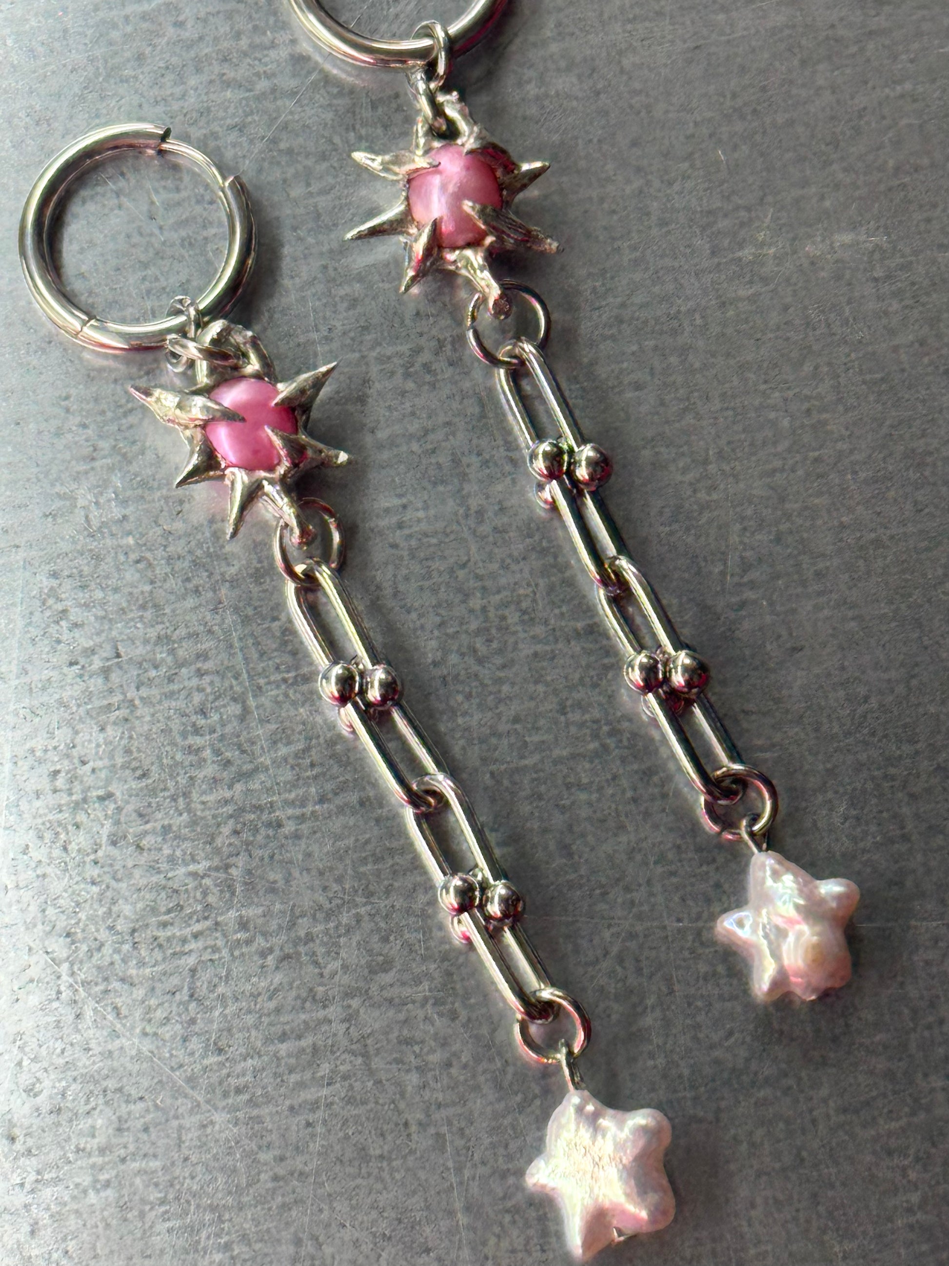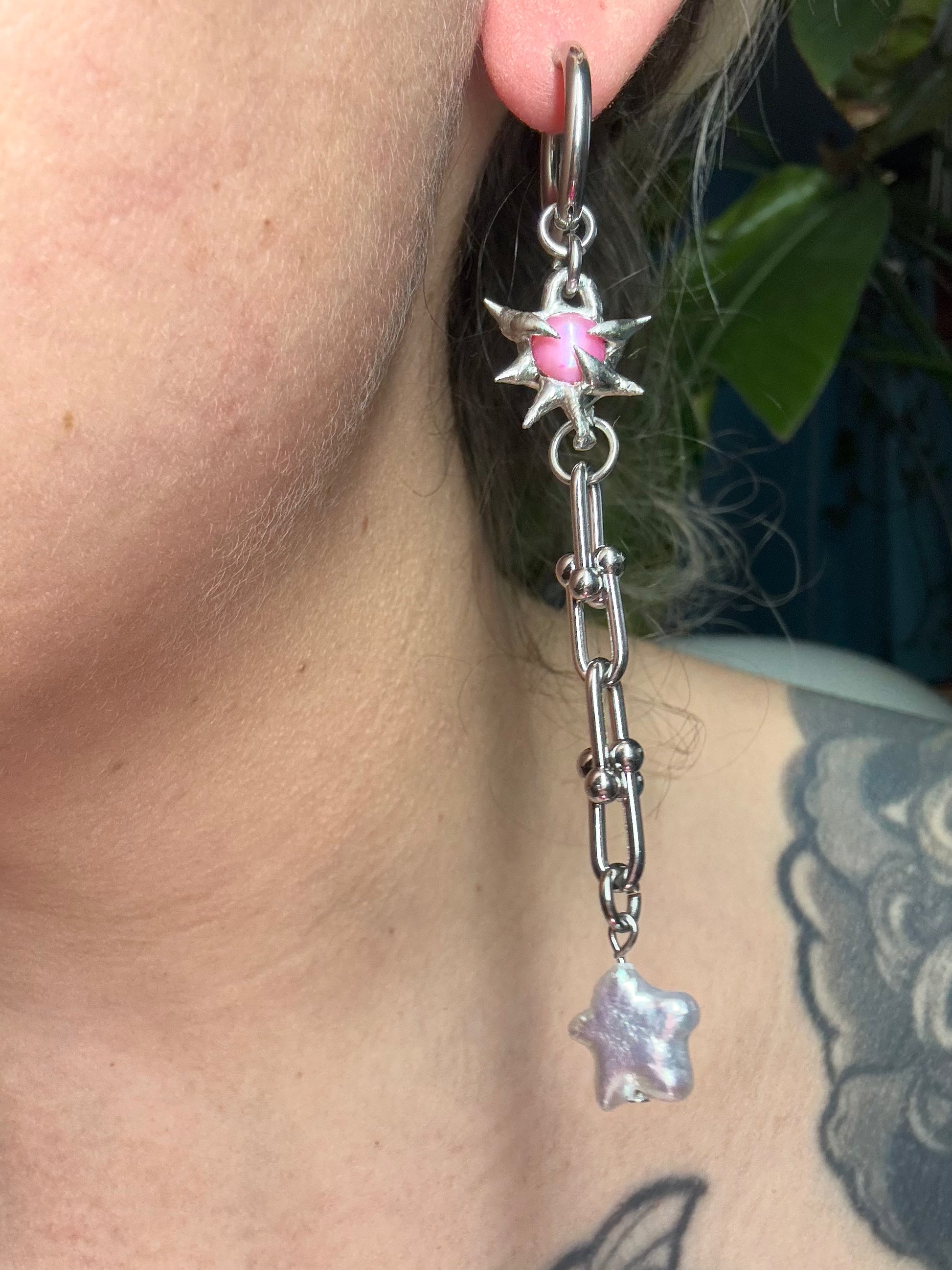 A hand-soldered freshwater pearl on stainless steel Creoles (hypoallergenic)