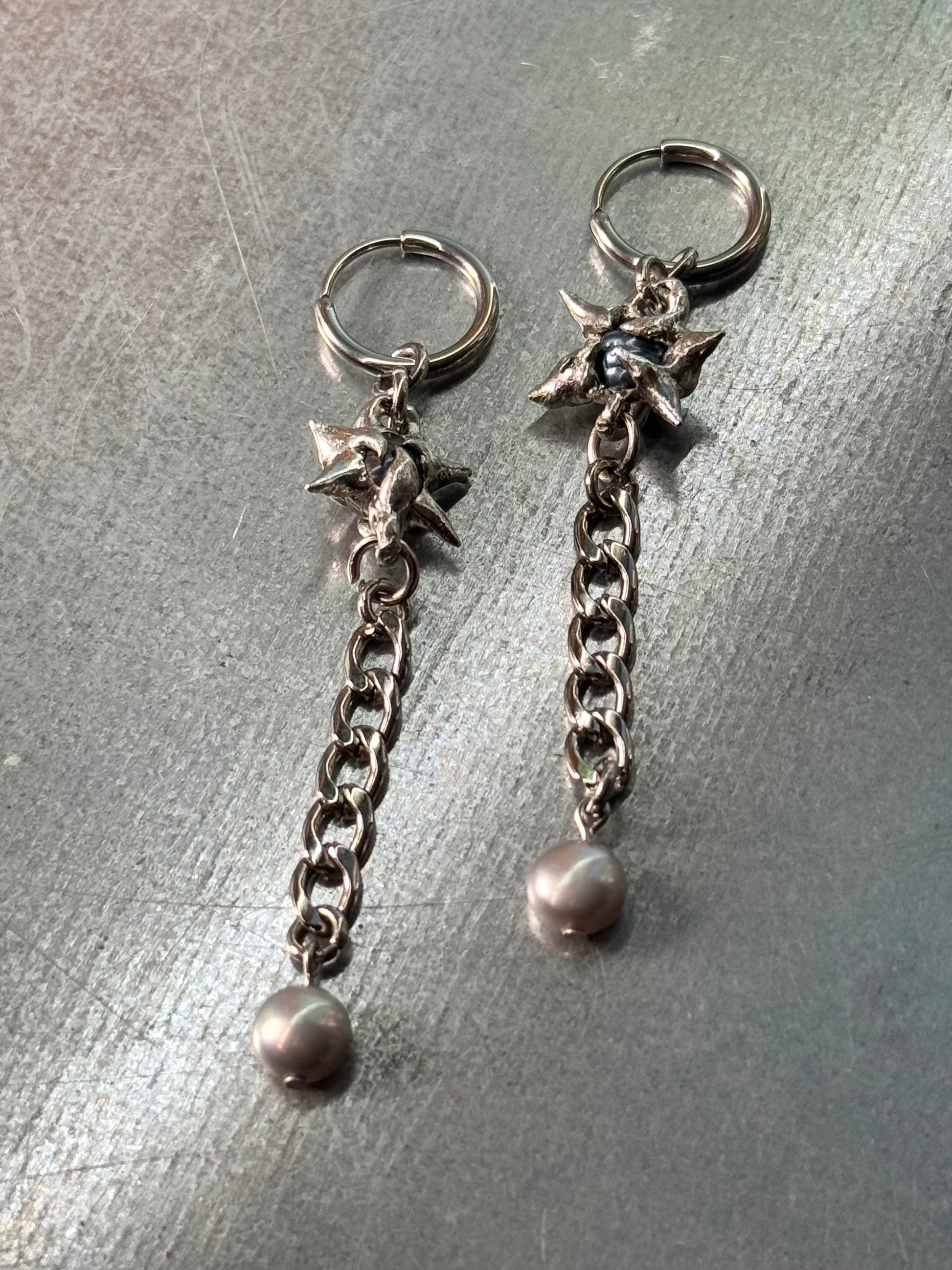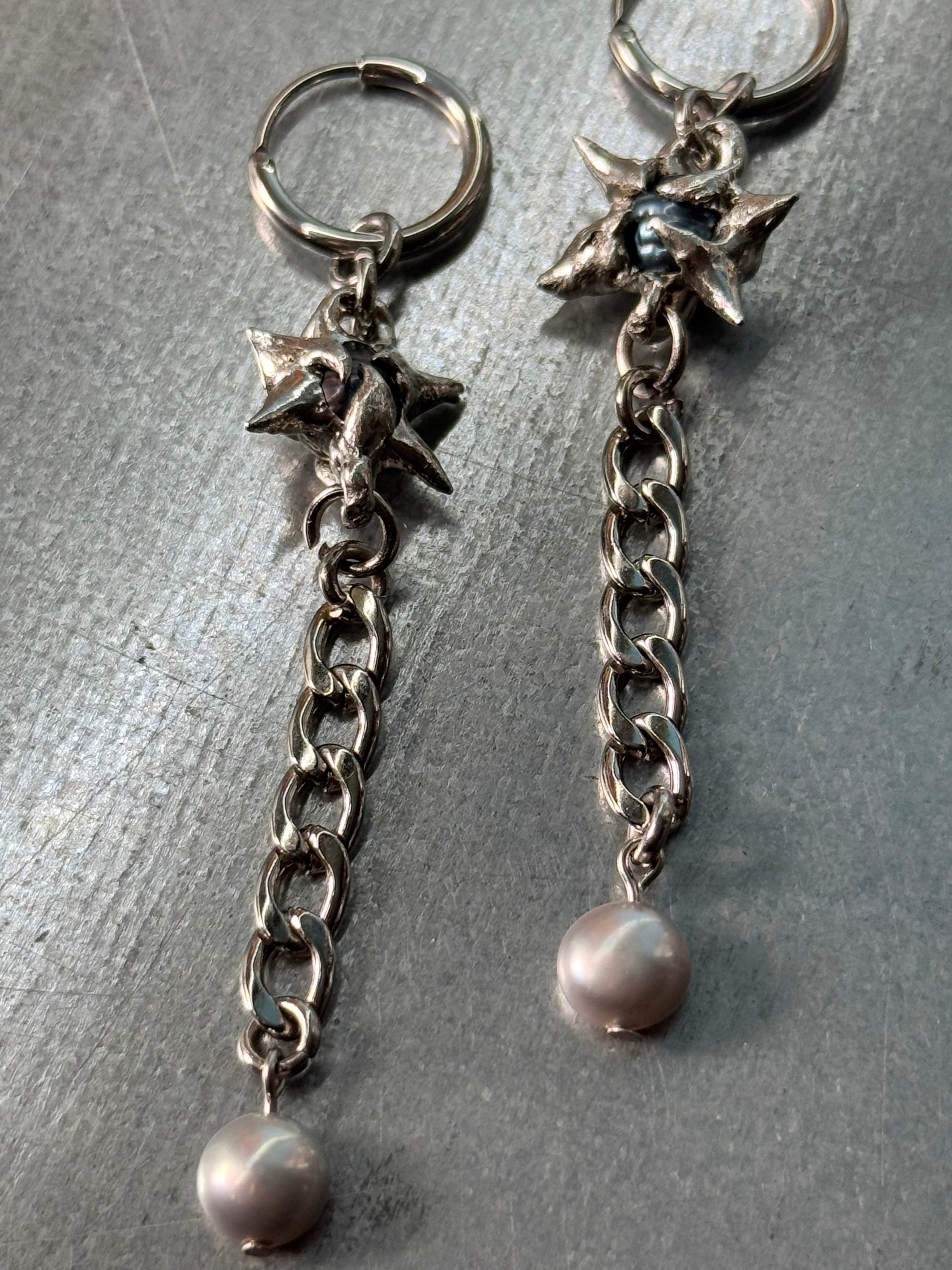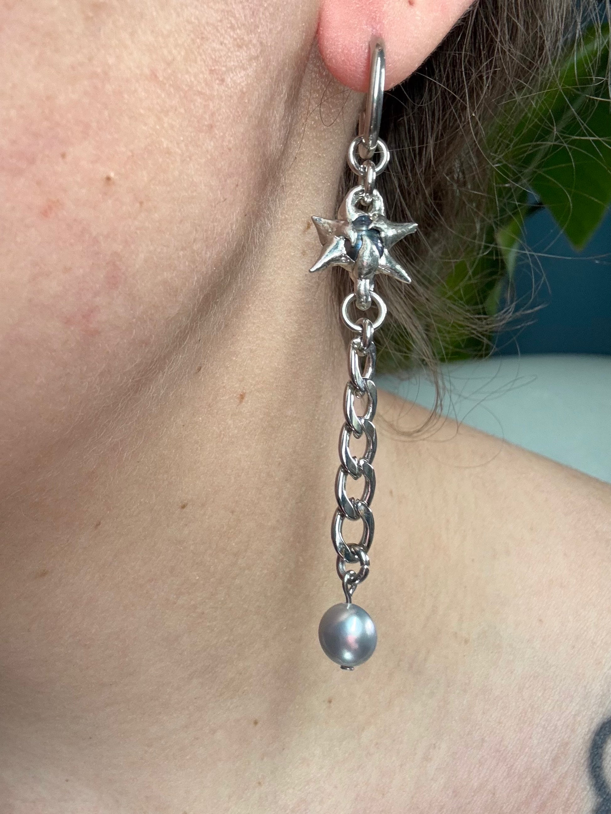 A hand-soldered freshwater pearl on stainless steel Creoles and Chain (hypoallergenic)