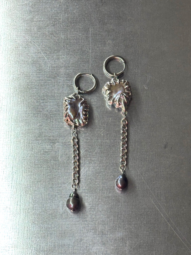 A hand-soldered freshwater pearl on stainless steel Creoles and Chain (hypoallergenic)