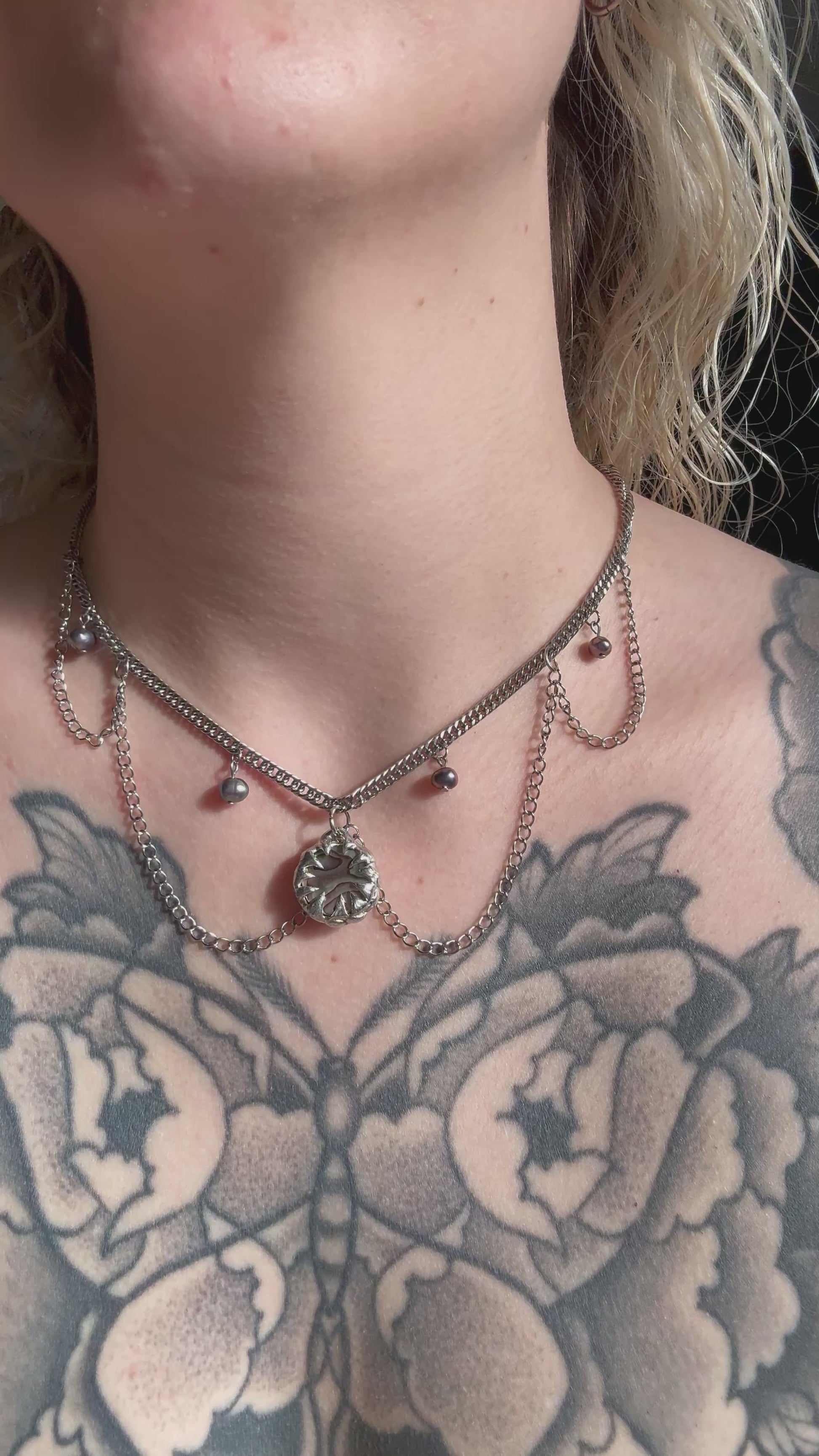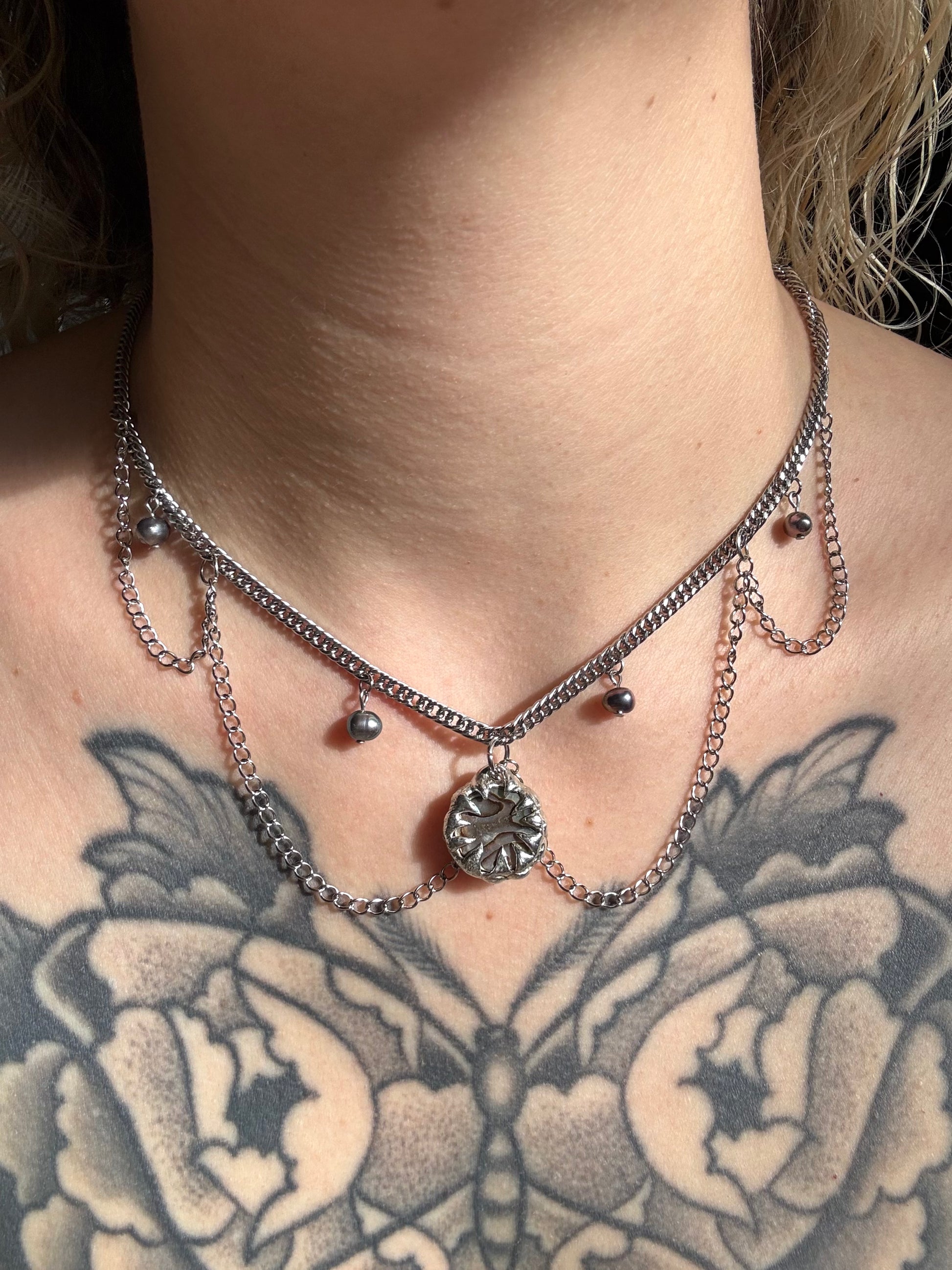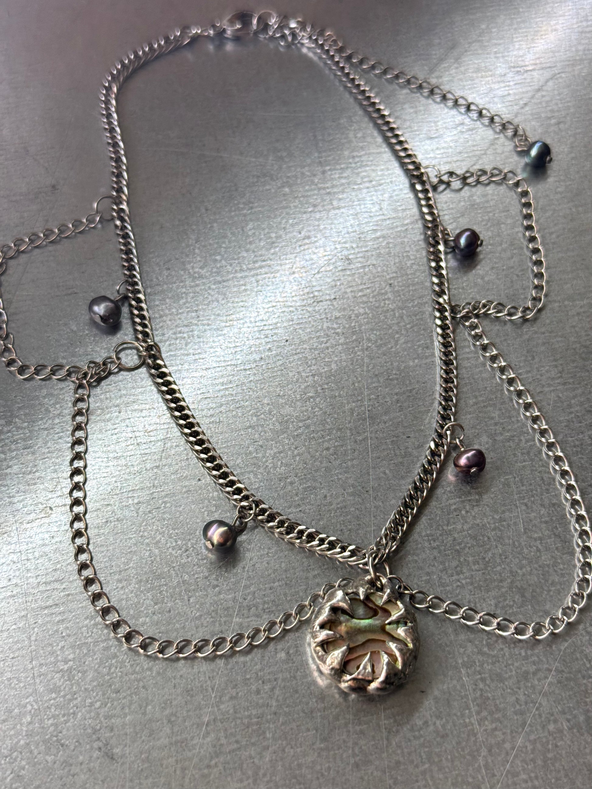 A hand soldered abalone shell on a stainless steel chain with freshwaterpearl (hypoallergenic)