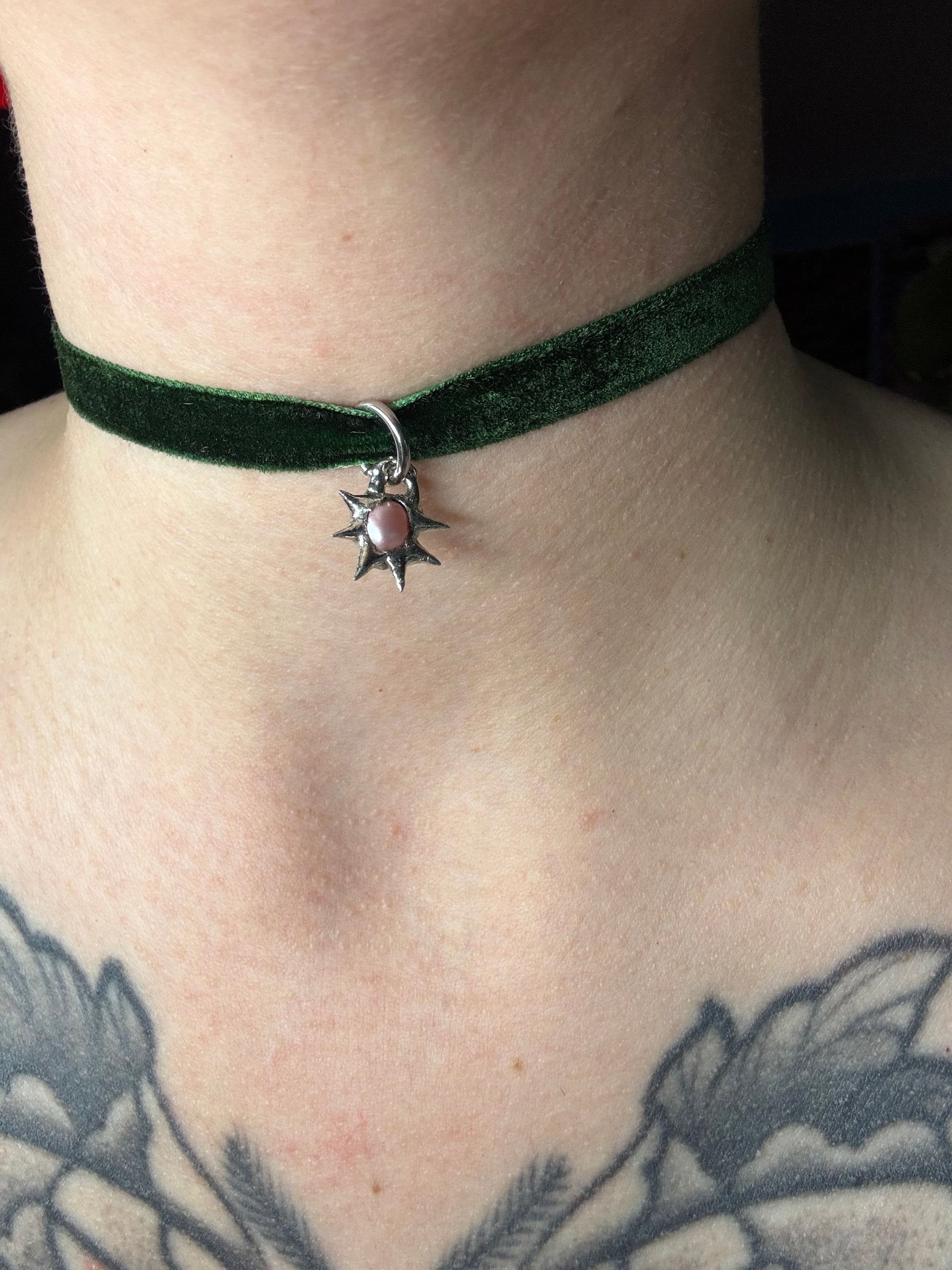 Freshwaterpearl or stone on a satin ribbon (hypoallergenic)