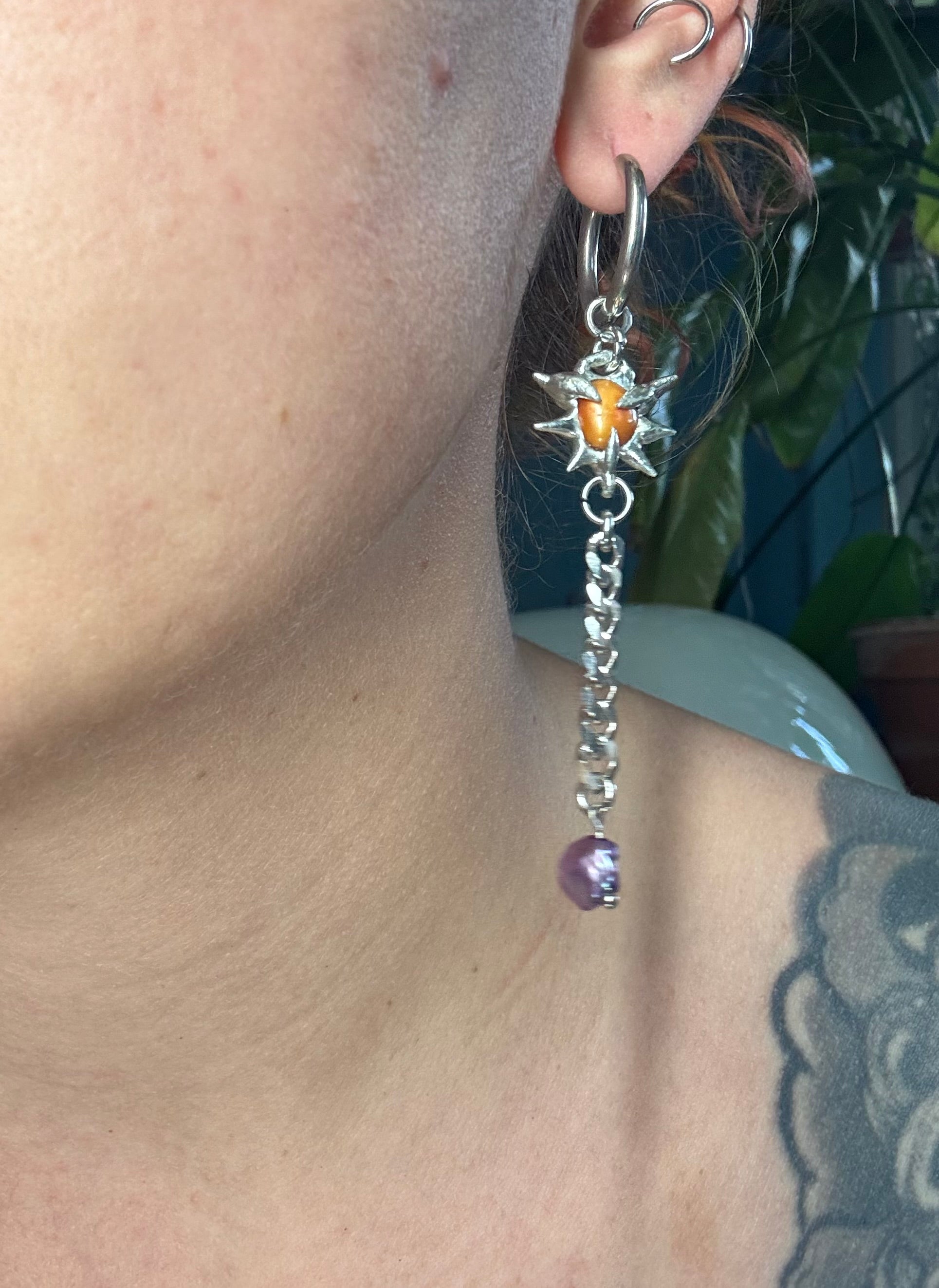 A hand-soldered freshwater pearl on stainless steel creoles and stainless steel chain (hypoallergenic)