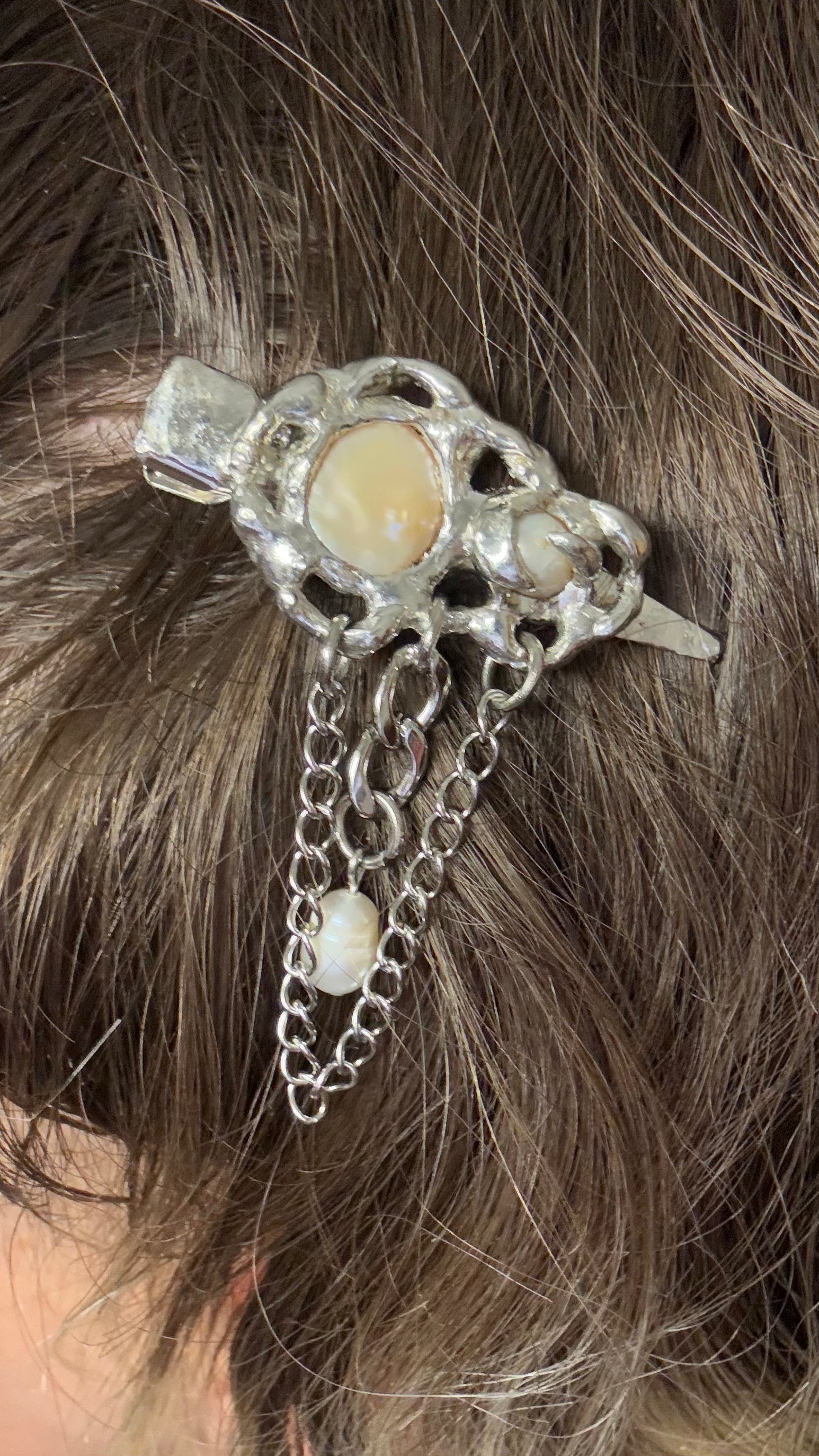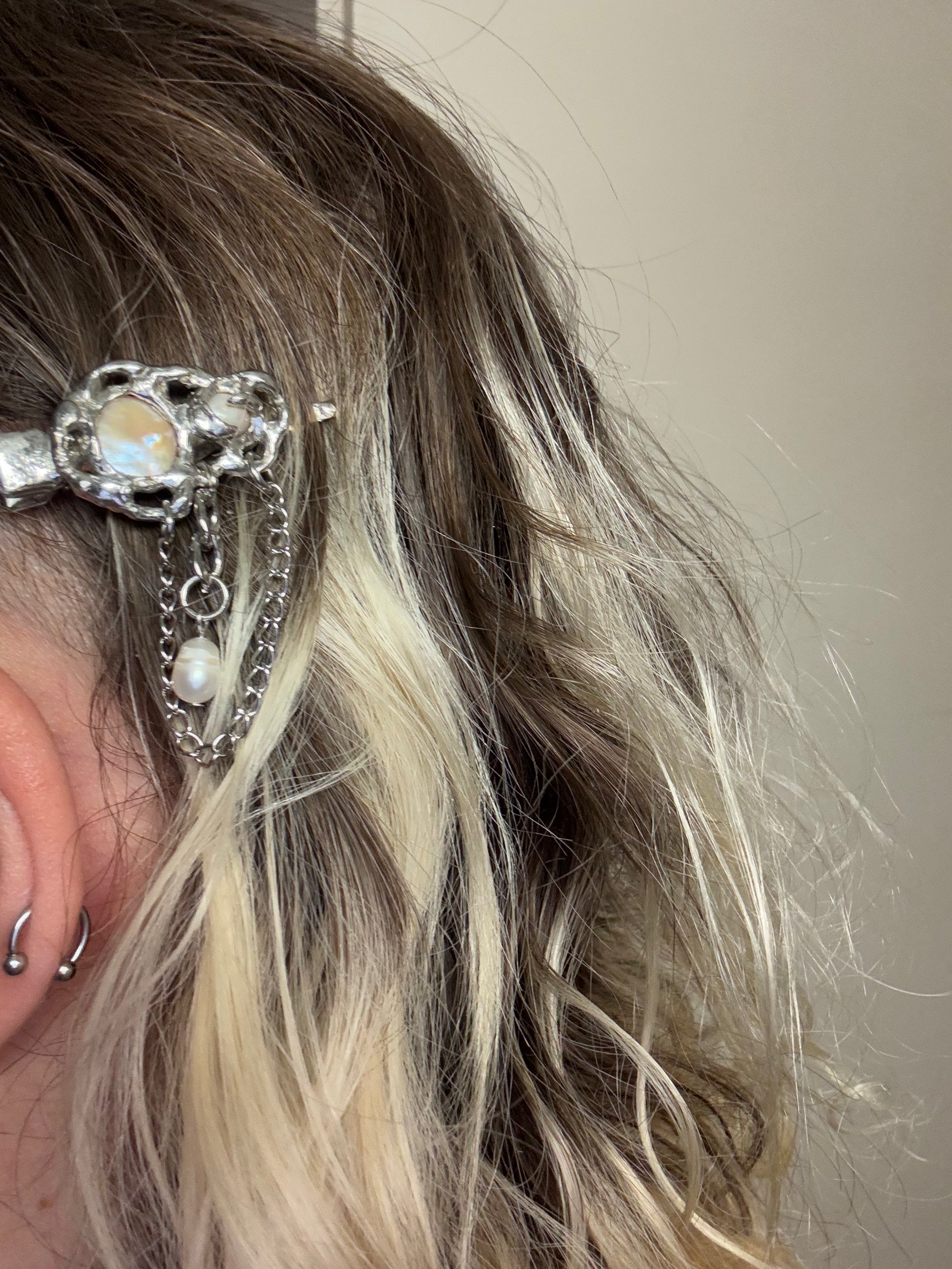 A hand-soldered freshwater pearl on stainless steel hairclip (hypoallergenic)