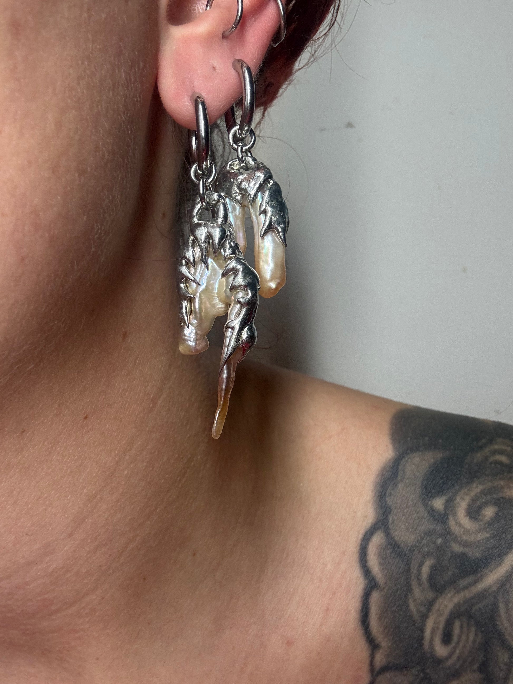 Because it is handmade, they are all unique pieces and each earring differs slightly. And the fershwaterpearls are slughtly different in the shape (because they are natural)