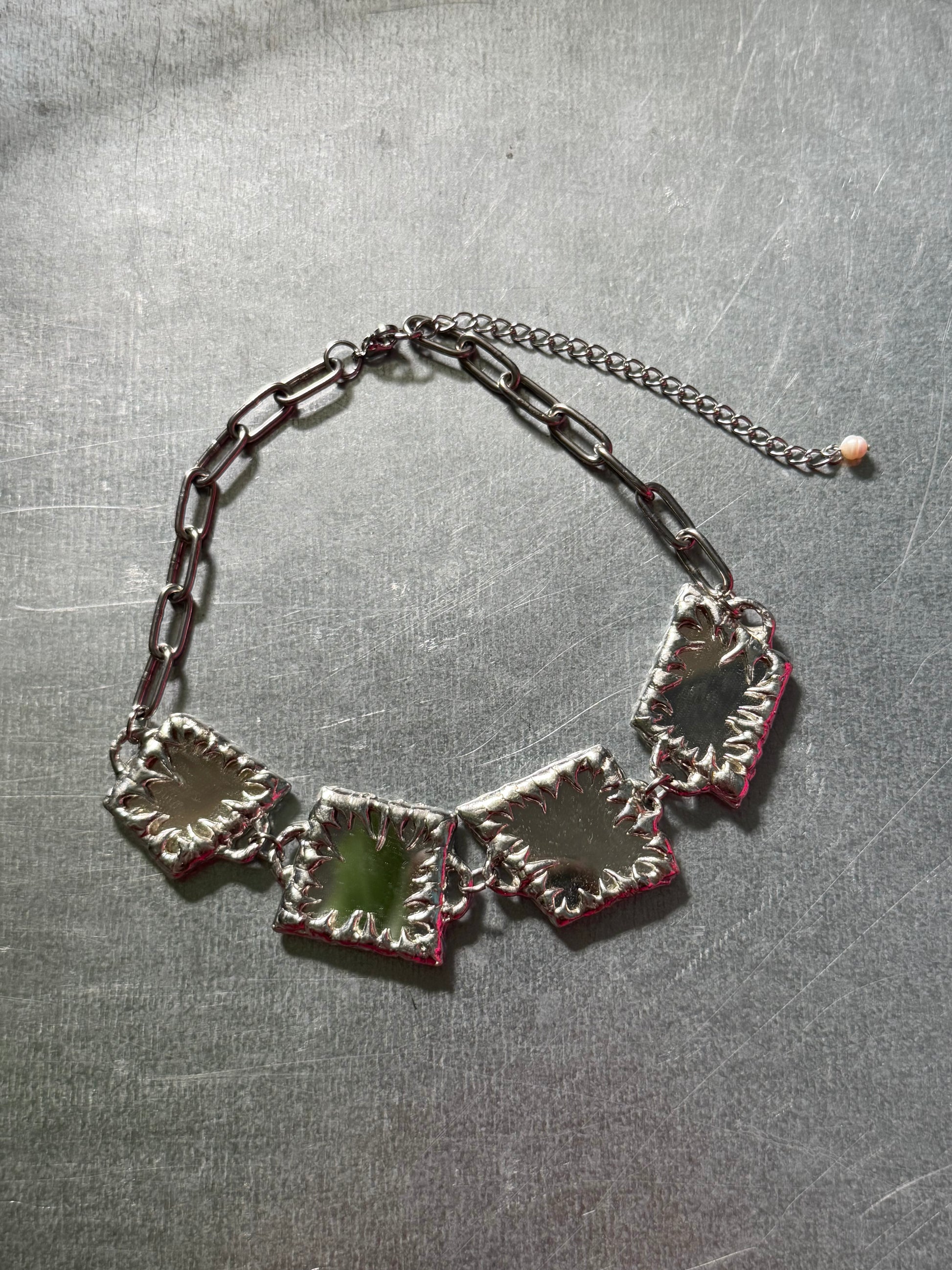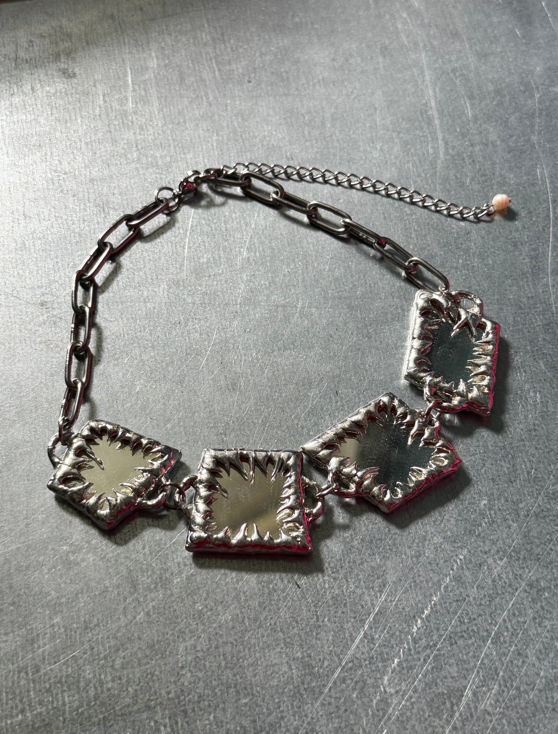 hand-soldered mirrors on a stainless steel chain.(hypoallergenic)