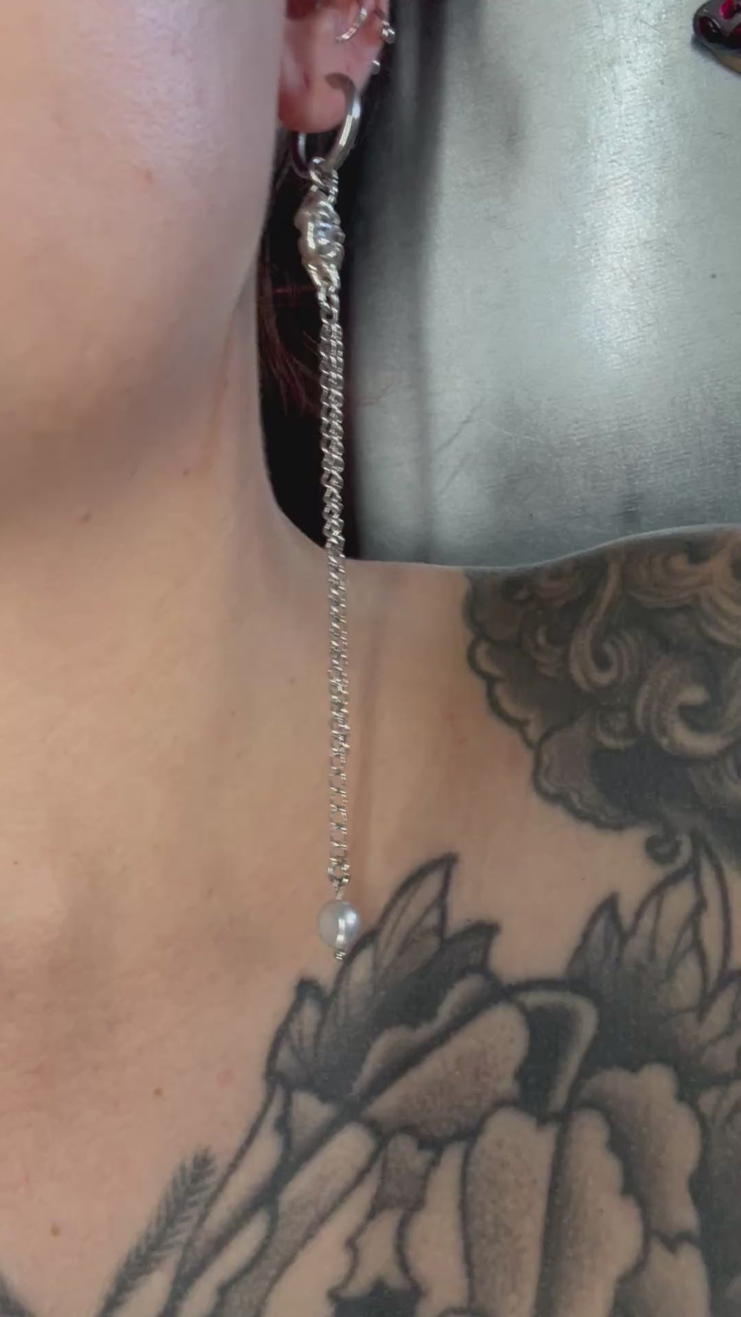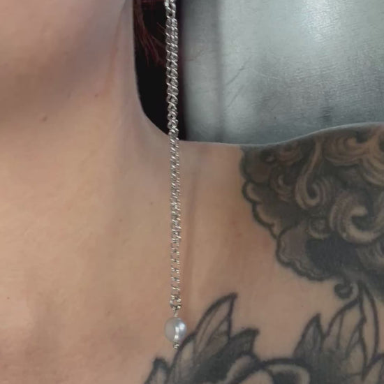A hand-soldered freshwater pearl on stainless steel Creoles (hypoallergenic)