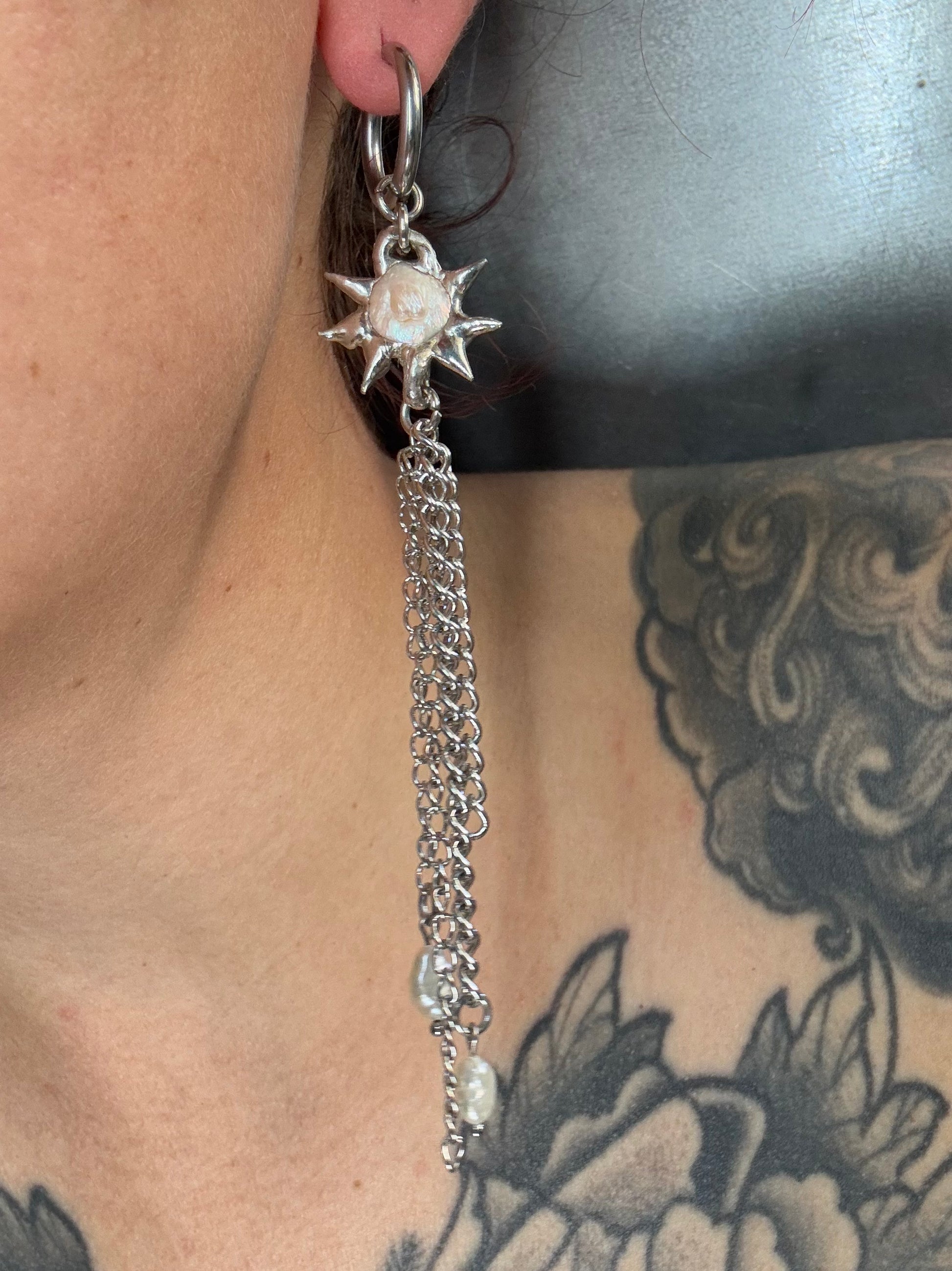 A hand-soldered freshwater pearl on stainless steel creole (hypoallergenic)