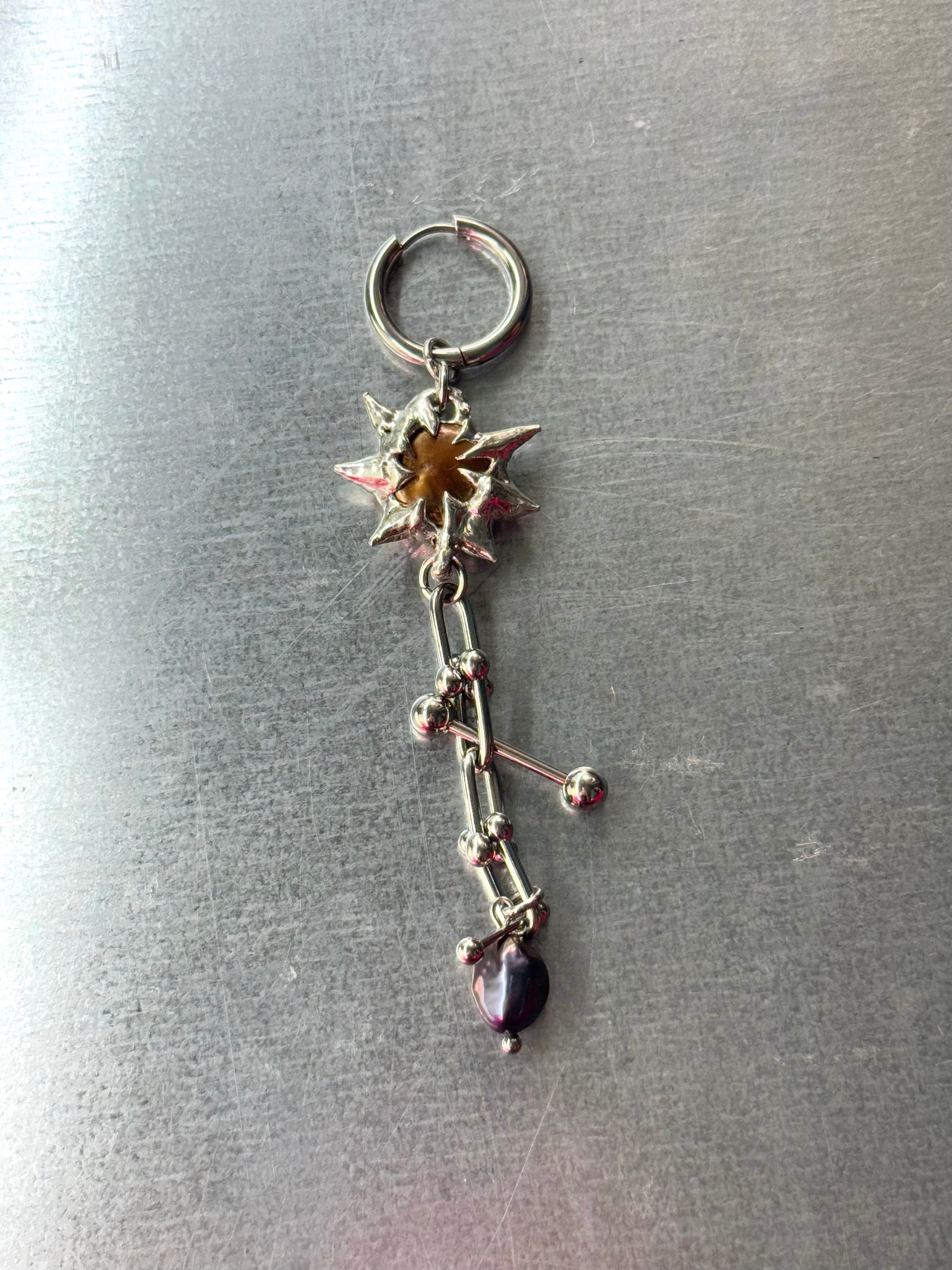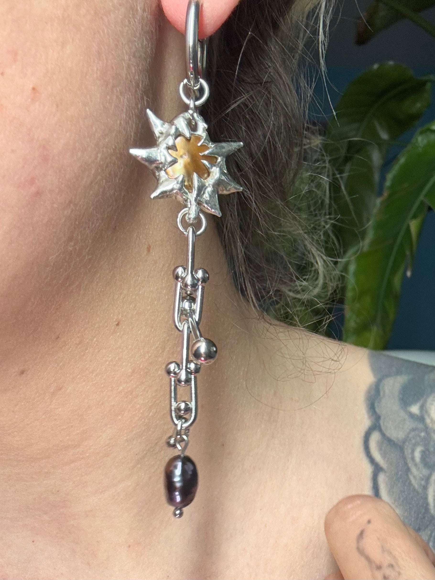 A hand-soldered freshwater pearl on stainless steel creoles with stainlees steel piercings (hypoallergenic)