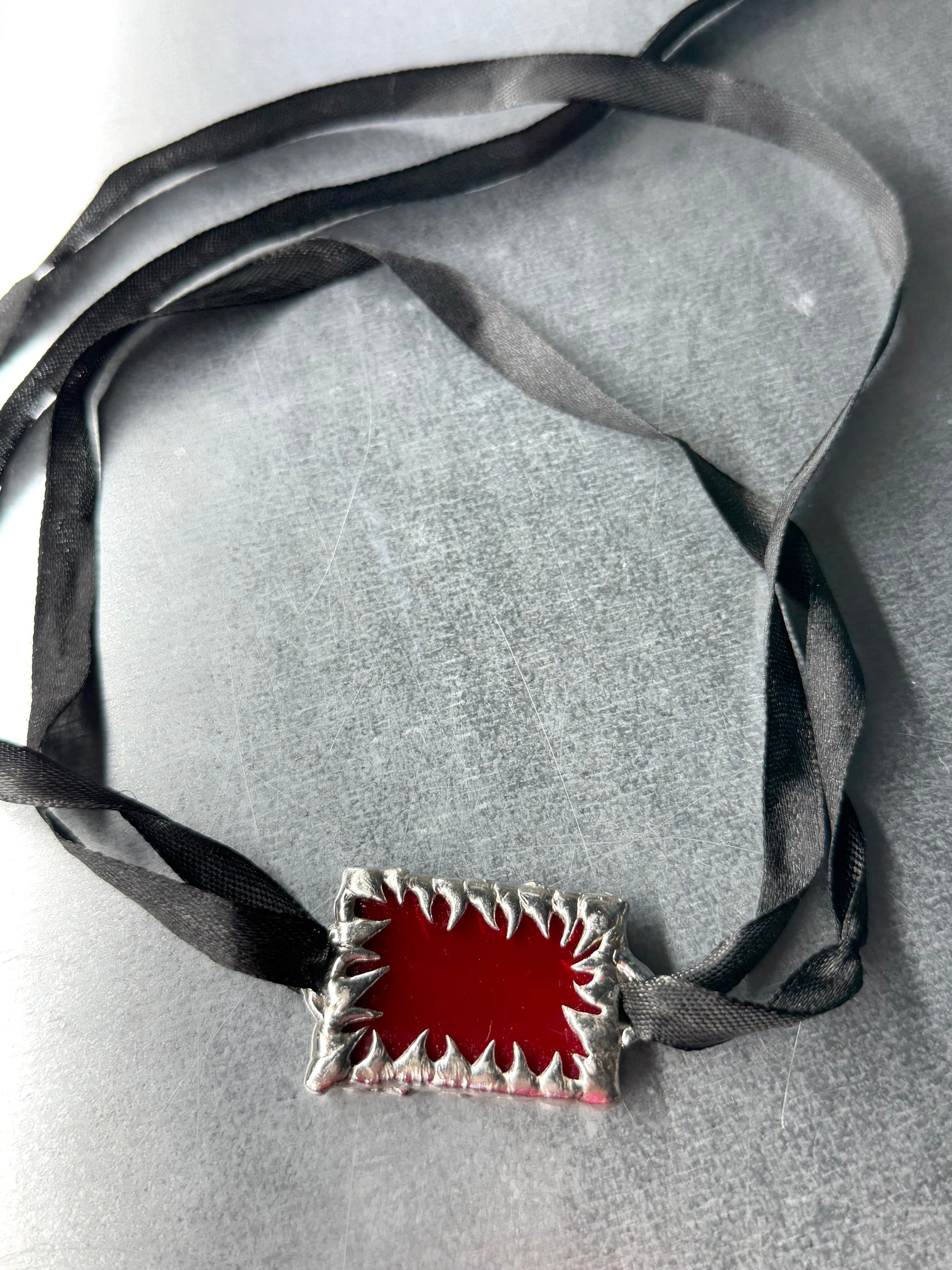 Red soldered stained glass on a satin ribbon (hypoallergenic)