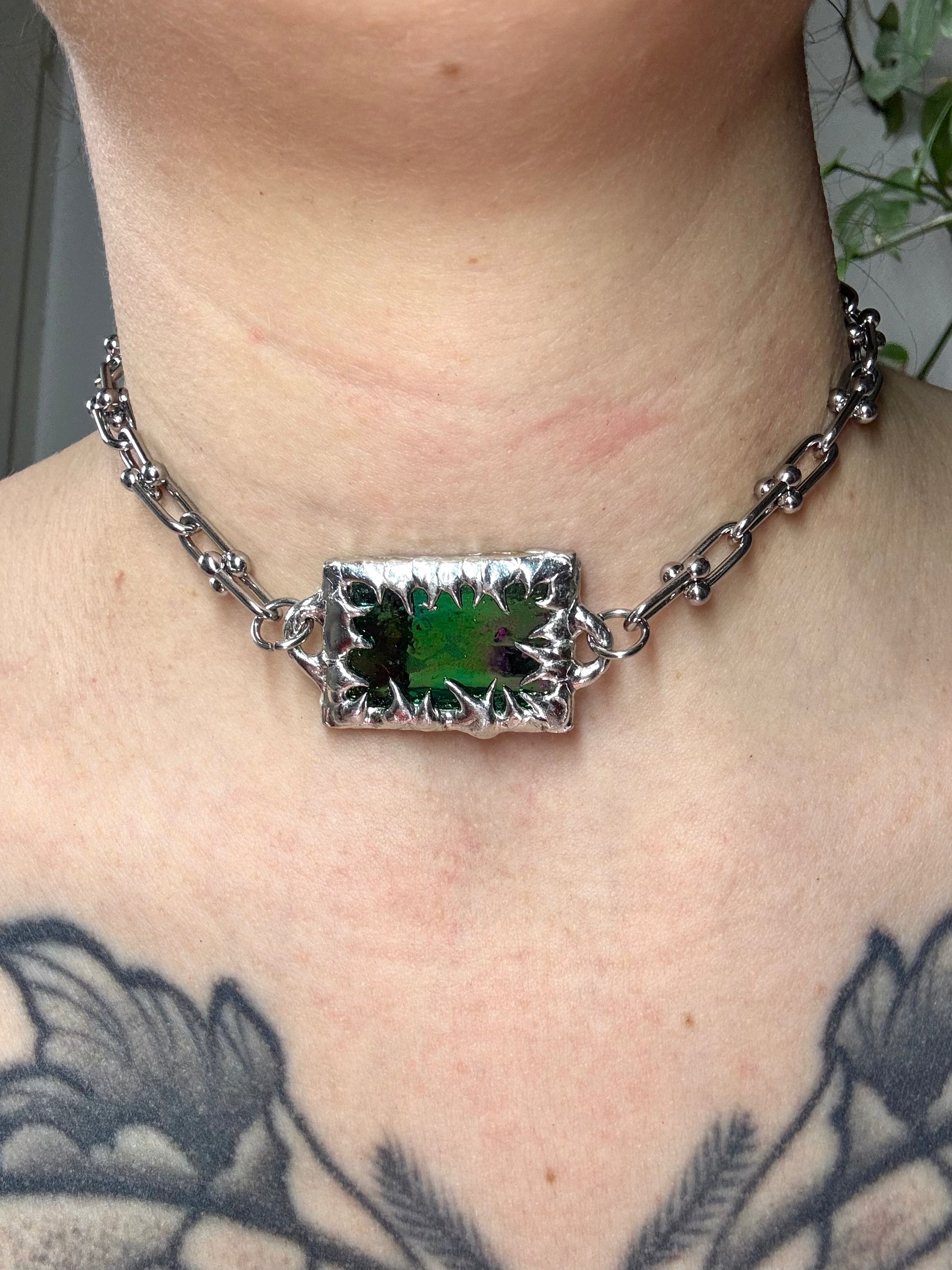 The chocker is stunning, really love the mesmerized colors of the stained glass. I wear it everyday since I received it, thank you ✨