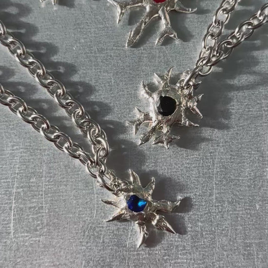 A hand-soldered zirconia stone on a stainless steel chain. (hypoallergenic)